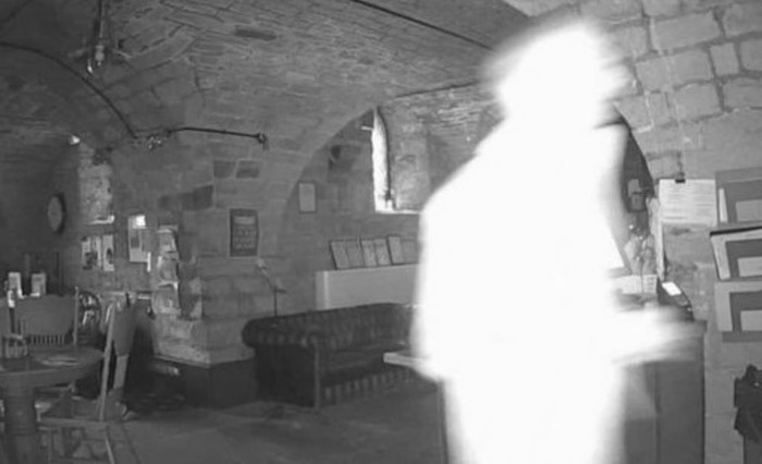 Еще один случай, когда призрак попал на камеру наблюдения. «Ключи» — ресторан в Западном Йоркшире. Фигура привидения двигается по ресторану. У камеры есть датчик движений, и если кто-то появляется в пустом ресторане, на телефон владельца приходит СМС.