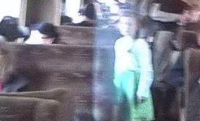 Девочка одета в белую кофту и голубую юбку. На снимке можно даже рассмотреть ее лицо. Также девочка вышла засвеченной, в отличие от других. Никто не смотрит на нее. Когда профессиональный фотограф проверял это изображение, он был шокирован. Согласно исследованию, свет вокруг девочки мог говорить о том, что это голограмма.