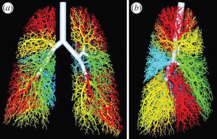 Для того, чтобы потреблять больше воздуха бронхам нужна как можно большая площадь поверхности. Но объём грудной полости ограничен! Чтобы наиболее эффективно решить эту задачу природа использует фракталы. Разберём, почему это так работает на более простом примере: