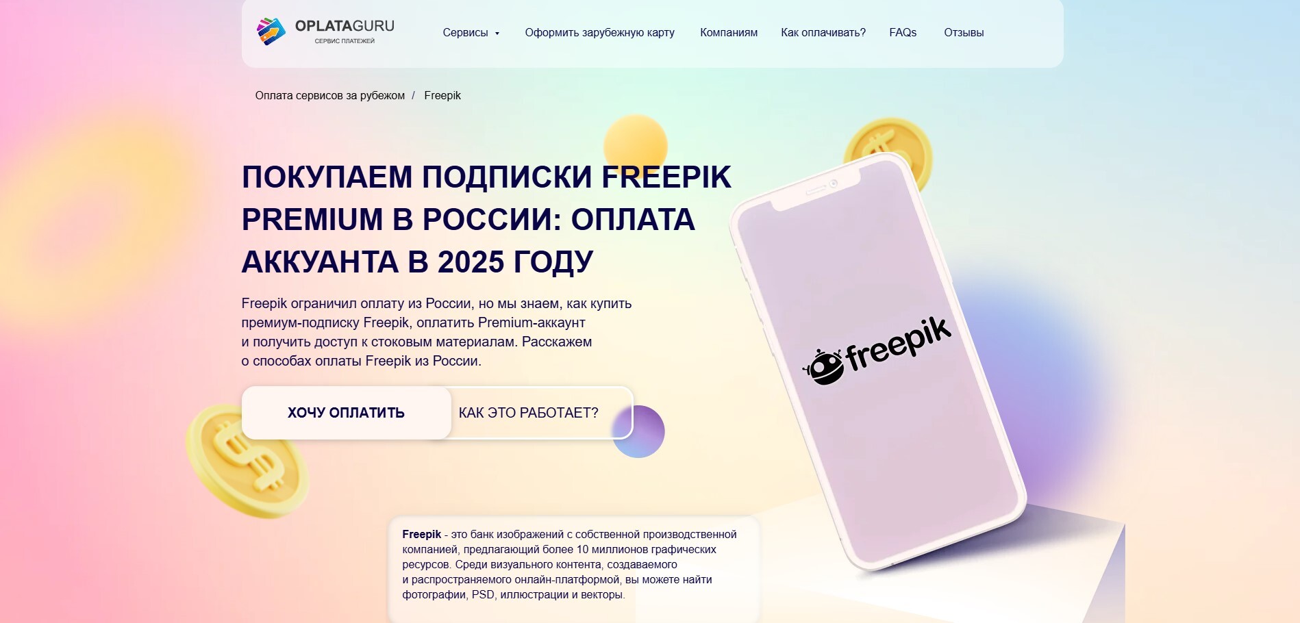 1. OplataGuru — надёжный сервис для оформления Фрипик подписки и оплаты Freepik из России