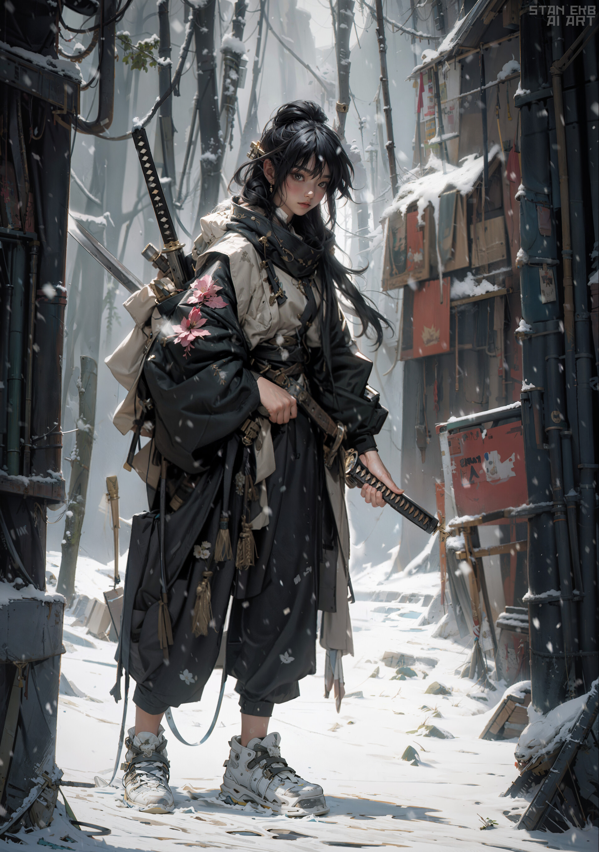 Ага, в этой работе пальцы победить не получилось, несмотря на правки и сотню рендеров, оставалось только самому их нарисовать, но я к тому времени уже так устал от этой работы, поэтому не стал этого делать) В других работах руки удалось победить)