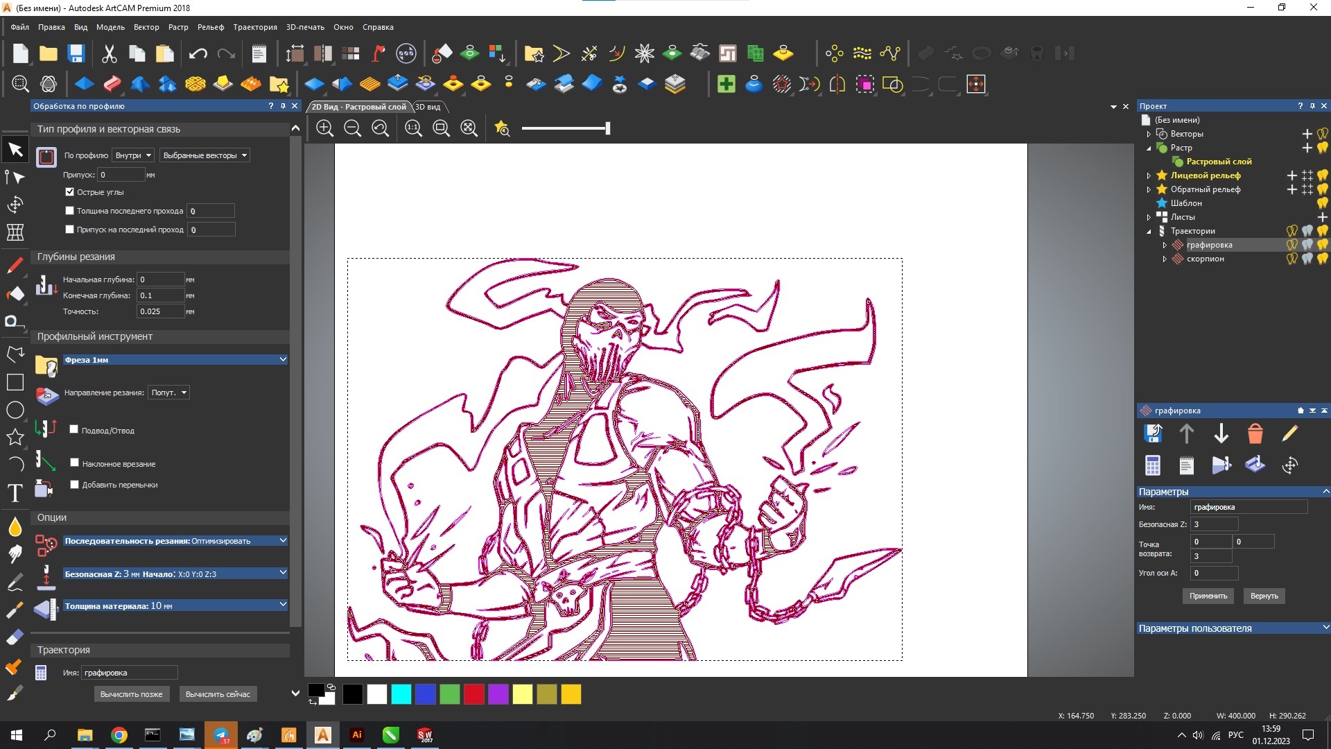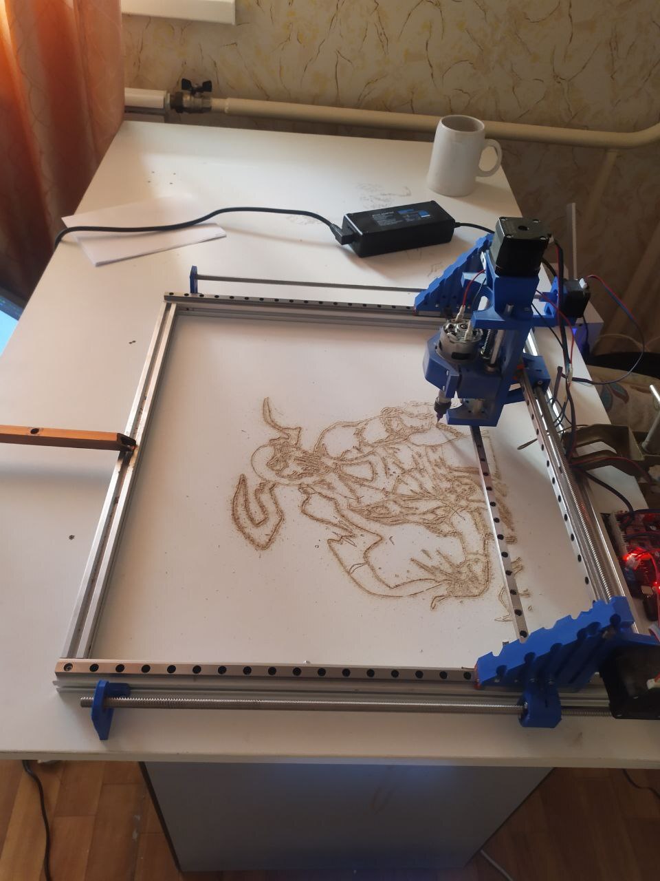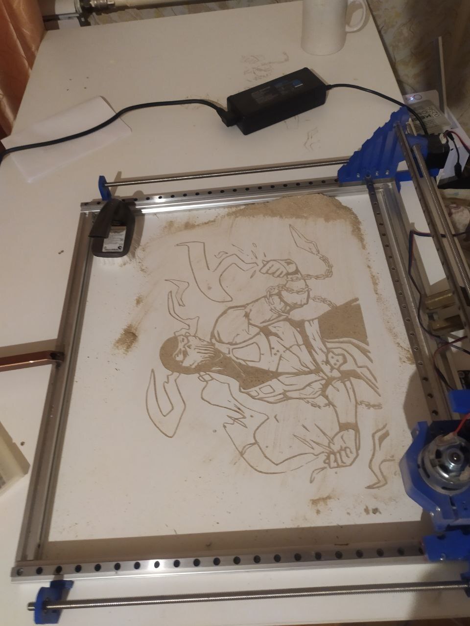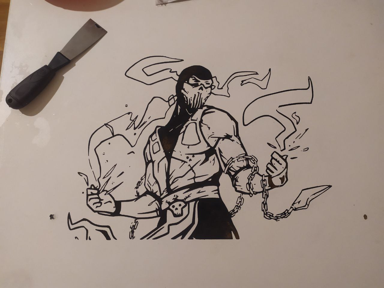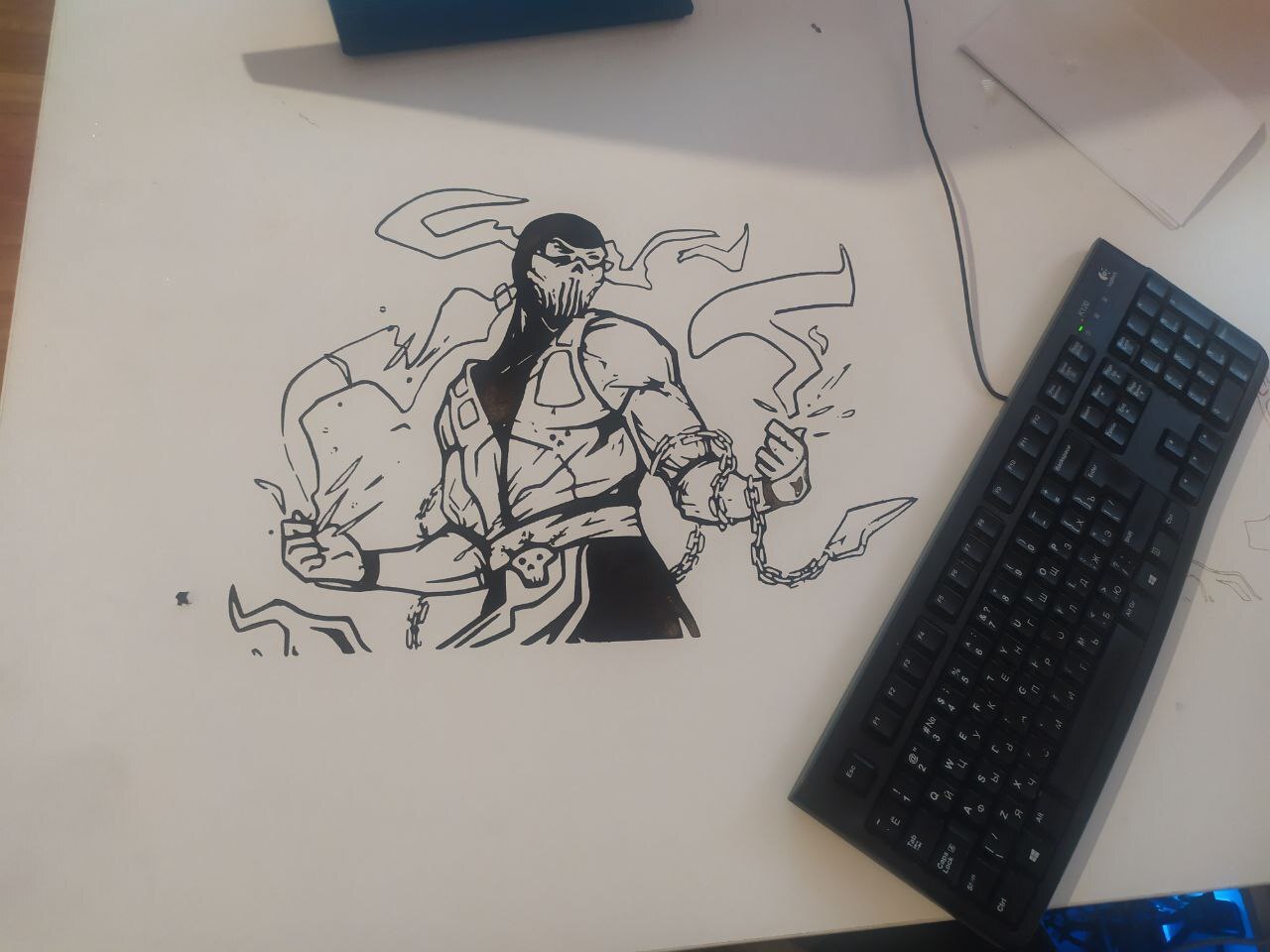 Распечатал, докупил недостающие запчасти (большинство уже было, так как давно хотел собрать) и станок готов, протестировал, подкорректировал, все ок. Нашел рисунок скорпиона из мортал комбата