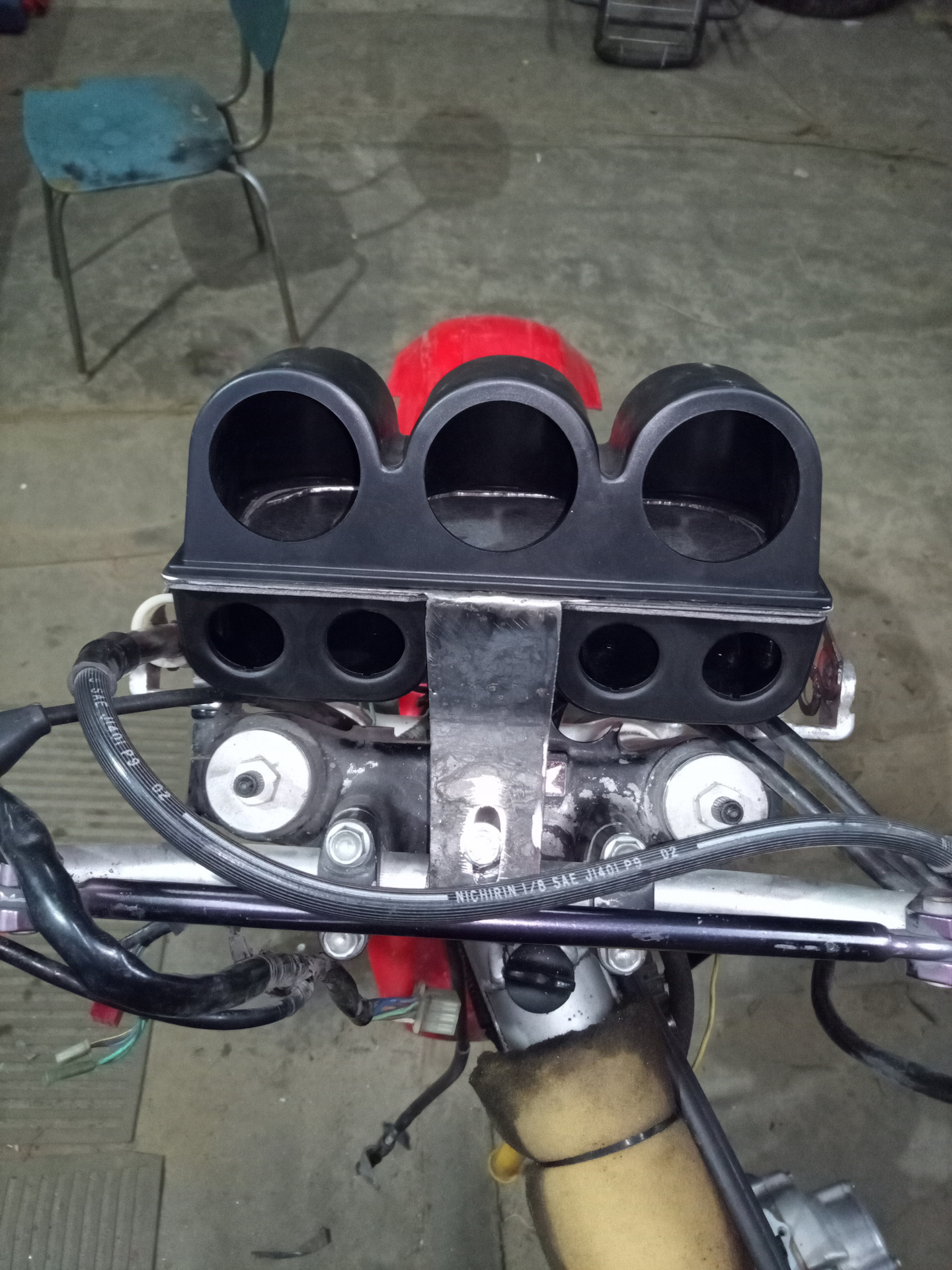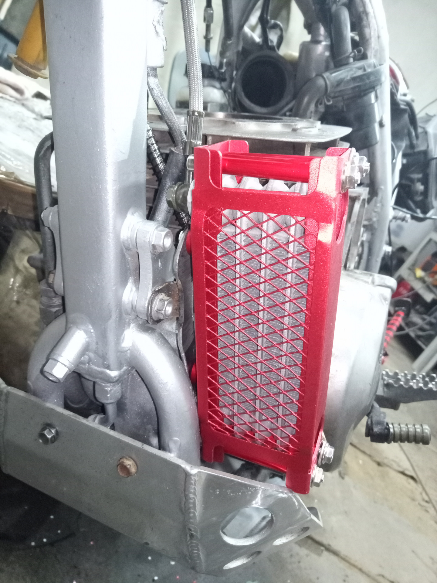 Так как мот воздушно масляного охлаждения (масло в раме), решил присобачить радиатор