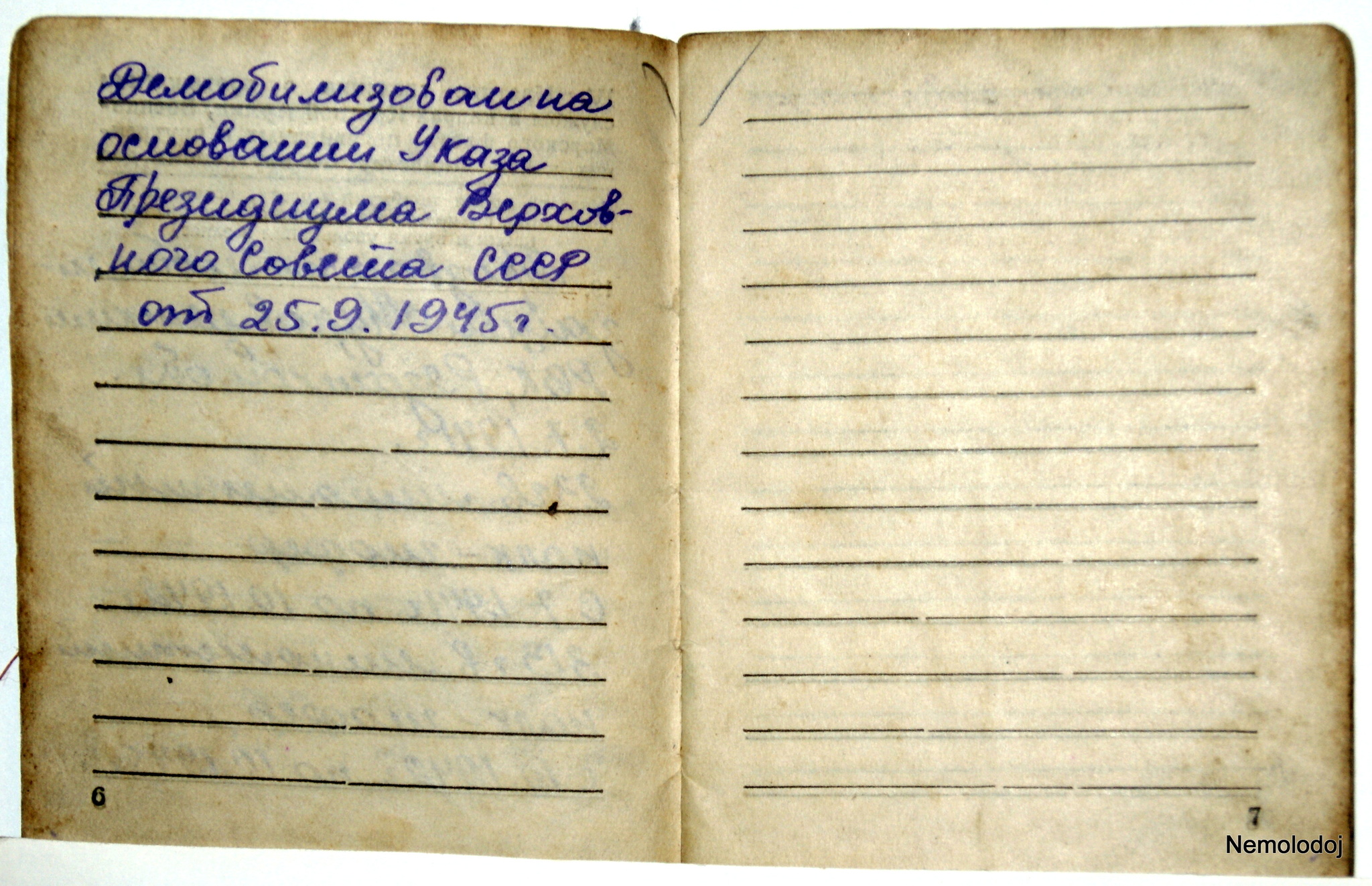 Отец вернулся домой 27 октября 1945 года. Работал шофером.