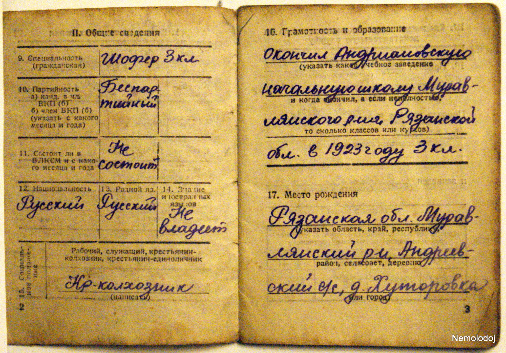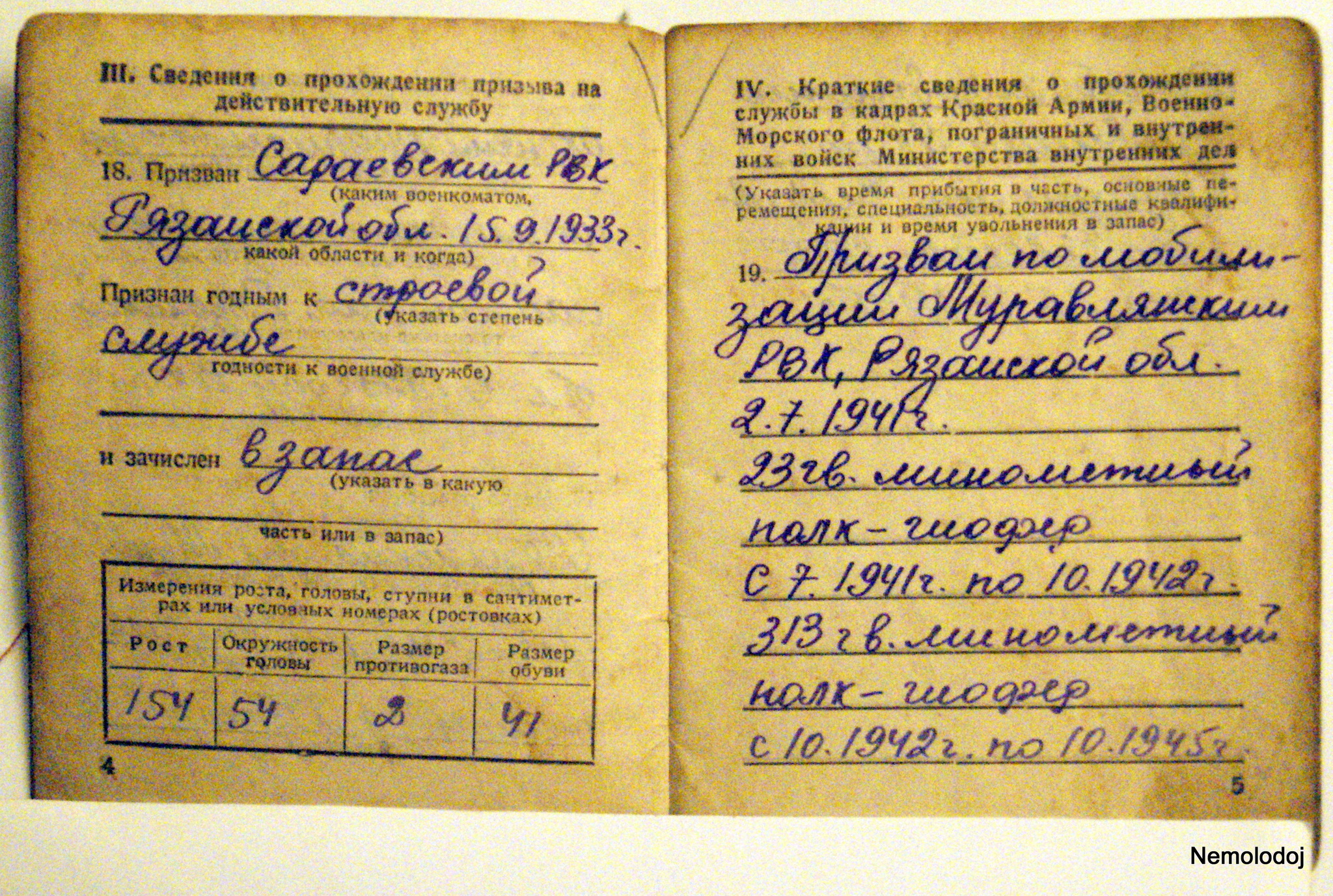 Прибыли они мобилизованные в Ряжск. Их построили. Скомандовали шоферам и трактористам выйти из строя. Отец вышел – показал удостоверение стажера. Его сразу привели к фотографу, и в этот же день выдали удостоверение шофера. Потом – Москва, Алабино, где формировался полк реактивных минометов «Катюша». Назначили его водителем полуторки – не с реактивной установкой, а машины обеспечения.