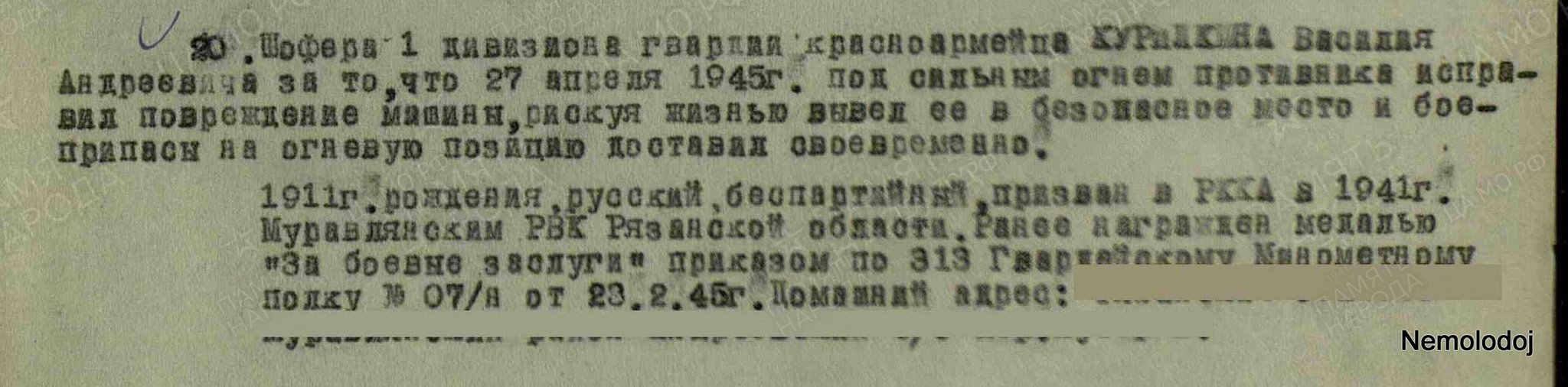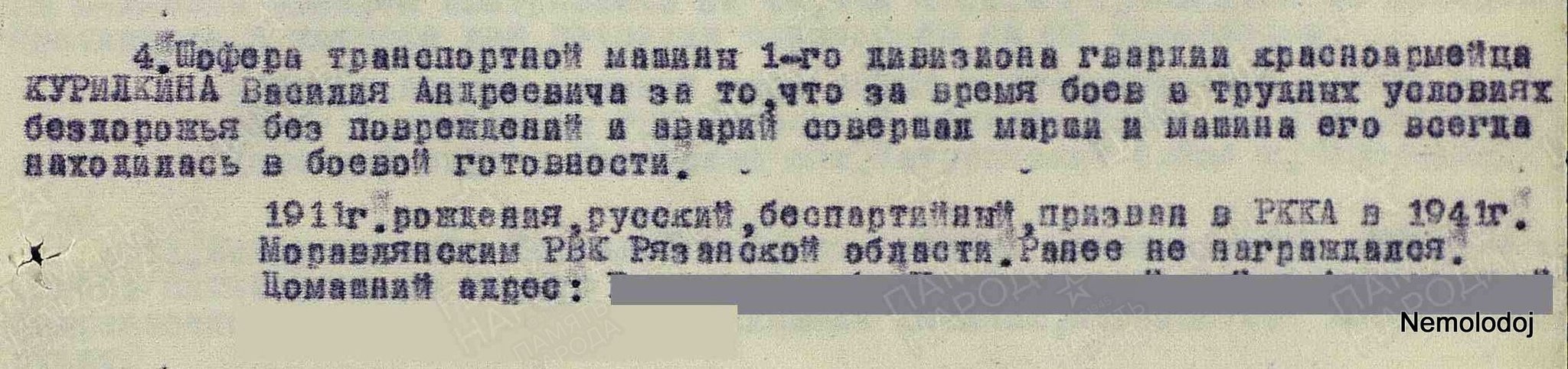 Рассказал сын фронтовика Александр Васильевич Курилкин 1935 года рождения.