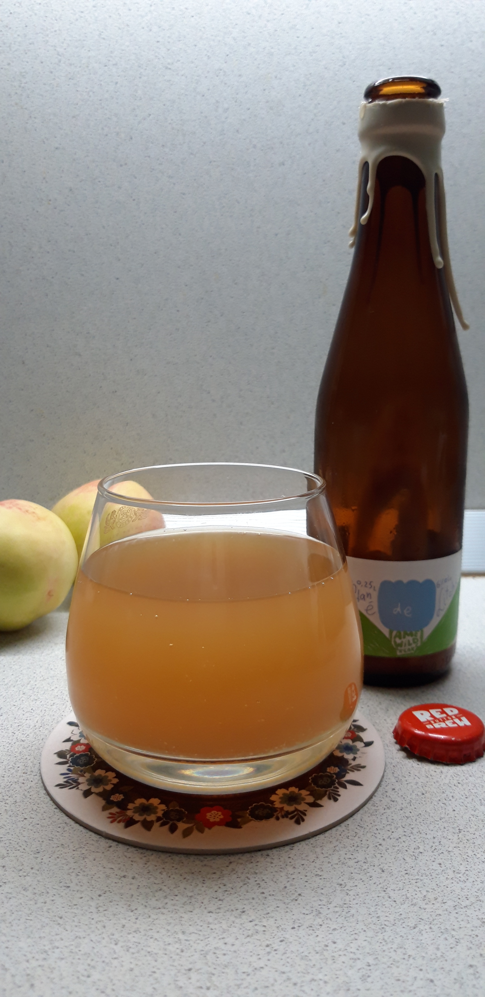 Напиток грязно-оранжевого цвета, с мелким белёсым осадком (основная муть расползлась по стенкам бутылки), без пены, по виду очень напоминает сидр.
