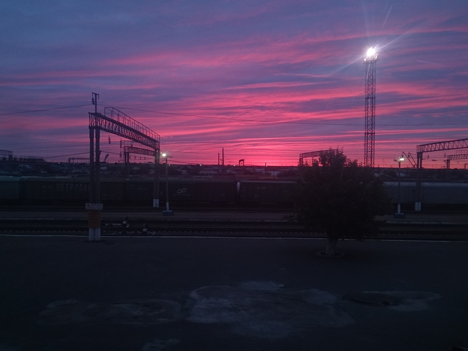 7 tbferox Фуксиновый рассвет. Казахстан 7 лет назад Снимал, будучи на ночном дежурстве в привокзальном интернет-кафе (2015 год, лето). Снято на тапок Sony Xperia Z (автоматические настройки сцены) [моё] Мобильная фотография Рассвет Фотография Sony xperia z Криворукий фотограф