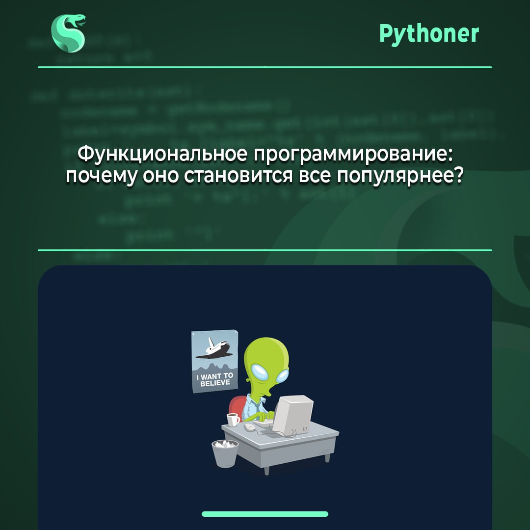 💬Меньше багов: Неизменяемость данных и чистые функции снижают вероятность ошибок, связанных с состоянием программы.