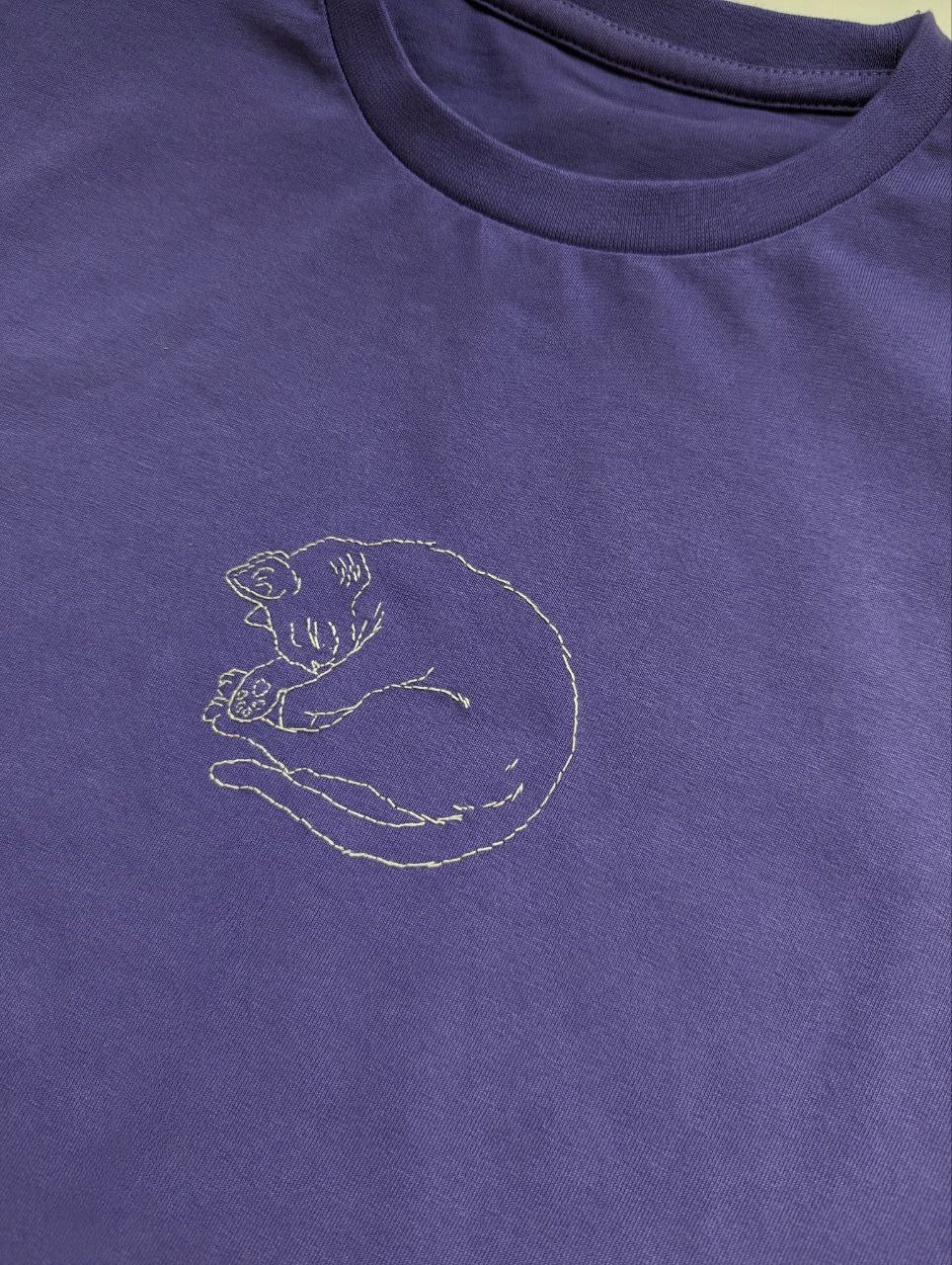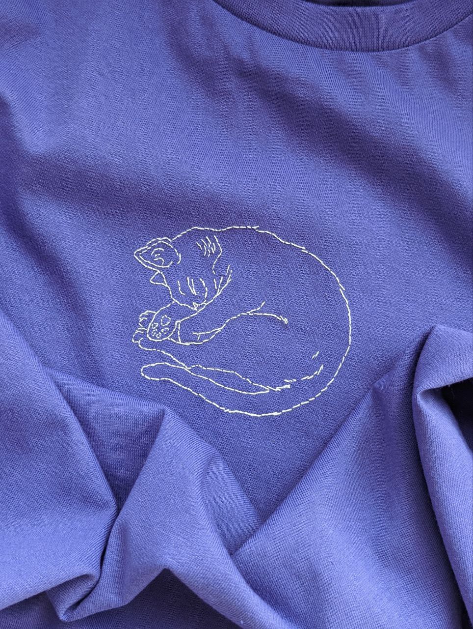 Футболка с ручной вышивкой "Кот"