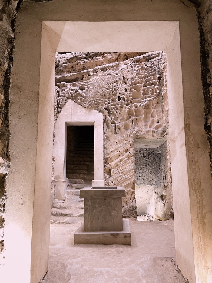 И вы входите в камеру Фараона, где размещён пустой гранитный саркофаг.