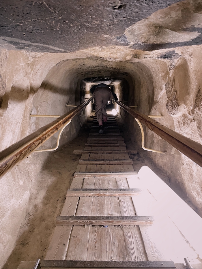 Сначала путь лежит через тесный восходящий коридор, приходится подниматься полусогнувшись.