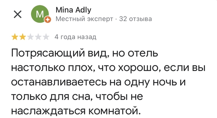 Хрен с ним, легли спать. Примерно через час мы проснулись от звуков перфораторов, каких ваш сосед никогда не делал! Нам повезло и именно в это раннее утро стали устанавливать строительные леса для реконструкции здания. Вдоволь намучившись и истерически насмеявшись от ситуации, мы стали собираться на выход. Сестра решила оставить отзыв на гугл картах, дабы прочие избежали нашей участи. Жаль мы не догадались посмотреть отзывы раньше, там были такие перлы, что наша истерика продлилась ещё на час.