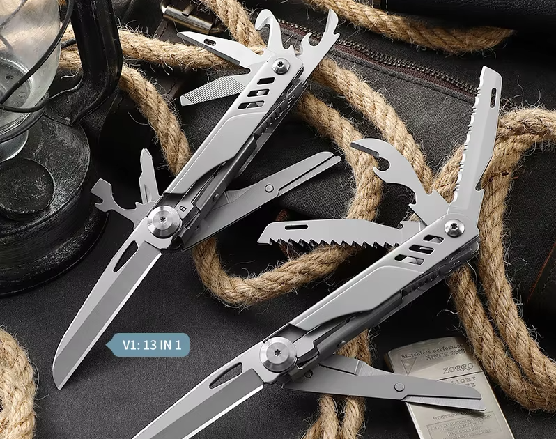 Инструмент включает острый нож, ножницы, отвёртки, открывалки и другие полезные элементы, что делает его незаменимым спутником в походе, на рыбалке, пикнике или в повседневных ситуациях. Эргономичная форма рукоятей обеспечивает уверенное удержание и комфорт при использовании.