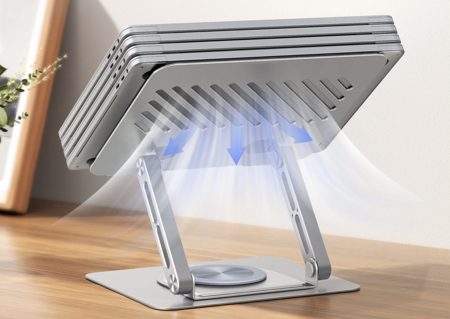 Стильная и прочная подставка из анодированного алюминия. Улучшает вентиляцию ноутбука, обеспечивает комфортный угол наклона для набора текста и работы. Совместима с ноутбуками до 17 дюймов.