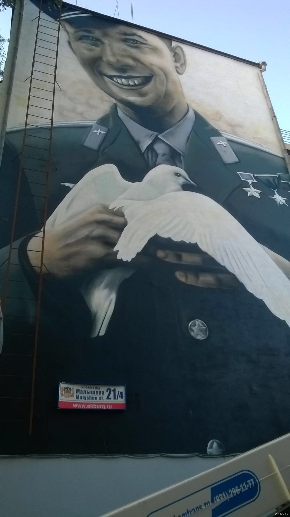 1921 TheOllysaurus Гагарин 11 лет назад На доме моих родителей за пару дней появилось такое чудо! [моё] Гагарин Юрий Гагарин Граффити Рисунок