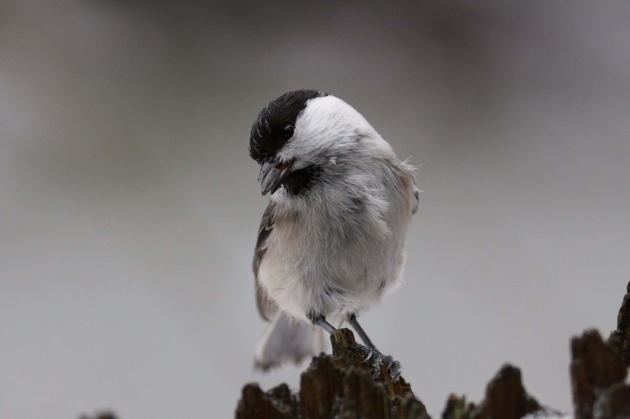 Выпавший на днях первый снег почти растаял, но птицы всё равно активно проверяют кормушки. И если прочие синицы соблюдают хоть какие то правила приличия, то пухляки начинают расхватывать семечки сразу, порой не дожидаясь даже момента, когда положивший их человек закончит наполнять кормушку.