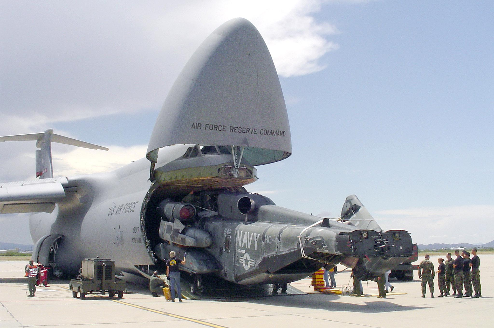 Погрузка Sikorsky CH-53E Super Stallion в Lockheed C-5A Galaxy