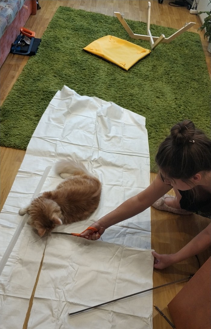 Подобрали ткань под подушку. Размеры прикинули "на глаз". Мимо, переборщили))