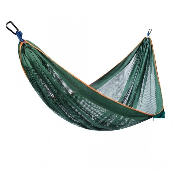 У новых моделей (моя старенькая) сетка отстёгивается полностью. Можно днём качаться на солнышке с компанией, а к ночи унести обратно под тент, вернуть сетку и спать. Я таскаю два: с сеткой, как личный домик, и без сетки — как общественную качельку.