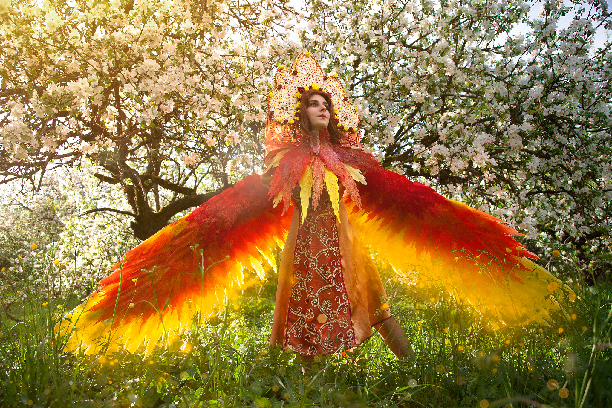 Эта райская птица приносит власть и могущество тем, над кем она низко пролетит и кто почувствует дуновение её крыльев. Хотя изначально эта птица появилась в персидской мифологии, она стала популярной в русской культуре. Она встречалась не только в книгах и произведениях искусства, но и, например, на гербе Смоленска, откуда я родом, поэтому образ выбран не случайно.