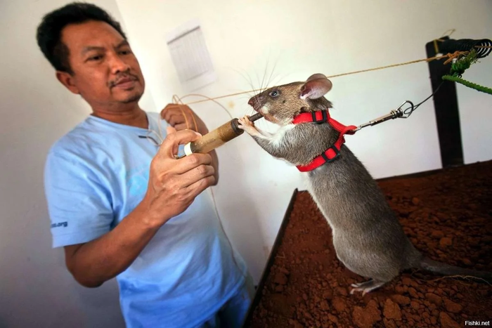 Идеальный нюх позволяет грызунам чуять закопанные мины. В этой сфере крысы гораздо лучше собак — их дешевле дрессировать, они также эффективны, а из-за маленького веса не могут активировать мину, когда найдут ее.