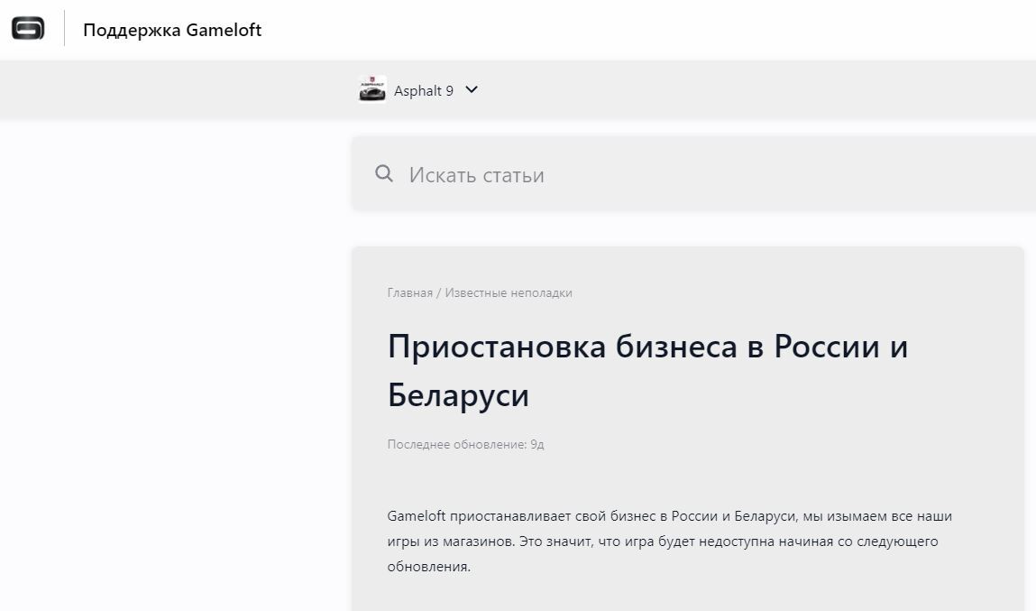 Gameloft: Приостановка бизнеса в России и Беларуси