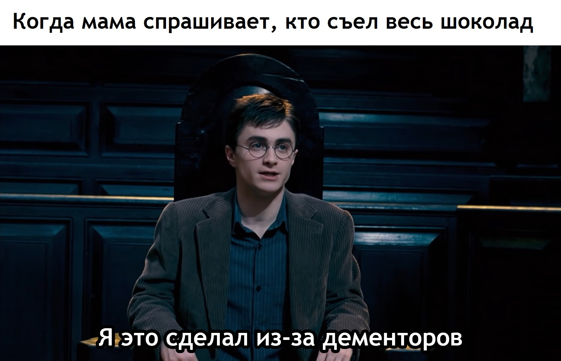 122 GeekPriyut Лига Поттероманов Гарри нужна шоколадная фабрика 4 года назад Из группы GeekPriyut Гарри Поттер Дементоры Суд Шоколад Перевел сам Картинка с текстом 1 Ещё 0
