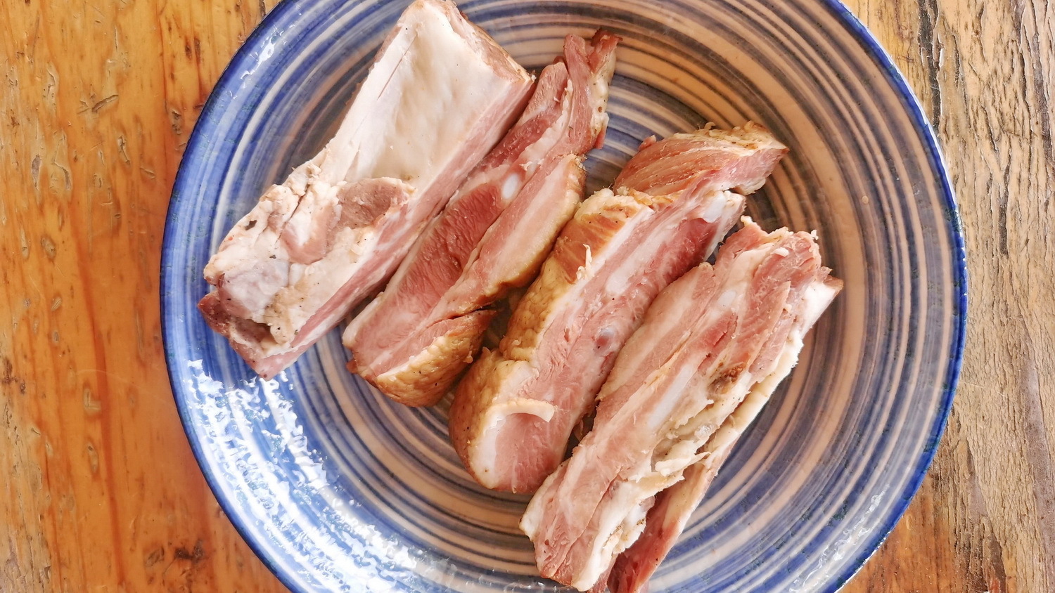 И вот мы подходим к самому главному – домашней копчёной свиной грудинке от отца Ольги. Вкусная, нежная, не пересоленная, тающая во рту. Это прекрасно. Ольга могла бы прислать только её, и этого было бы достаточно. Кот не остался обделённым и получил порцию вяленых лёгких и кошачьих лакомств.