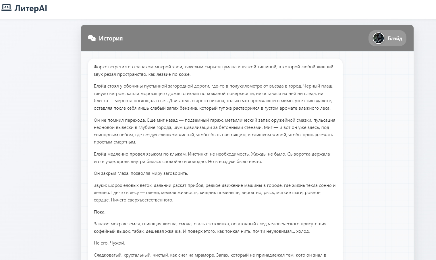 Откроется окно чата в котором нейронка начнет создавать нашу историю. Наслаждаемся!