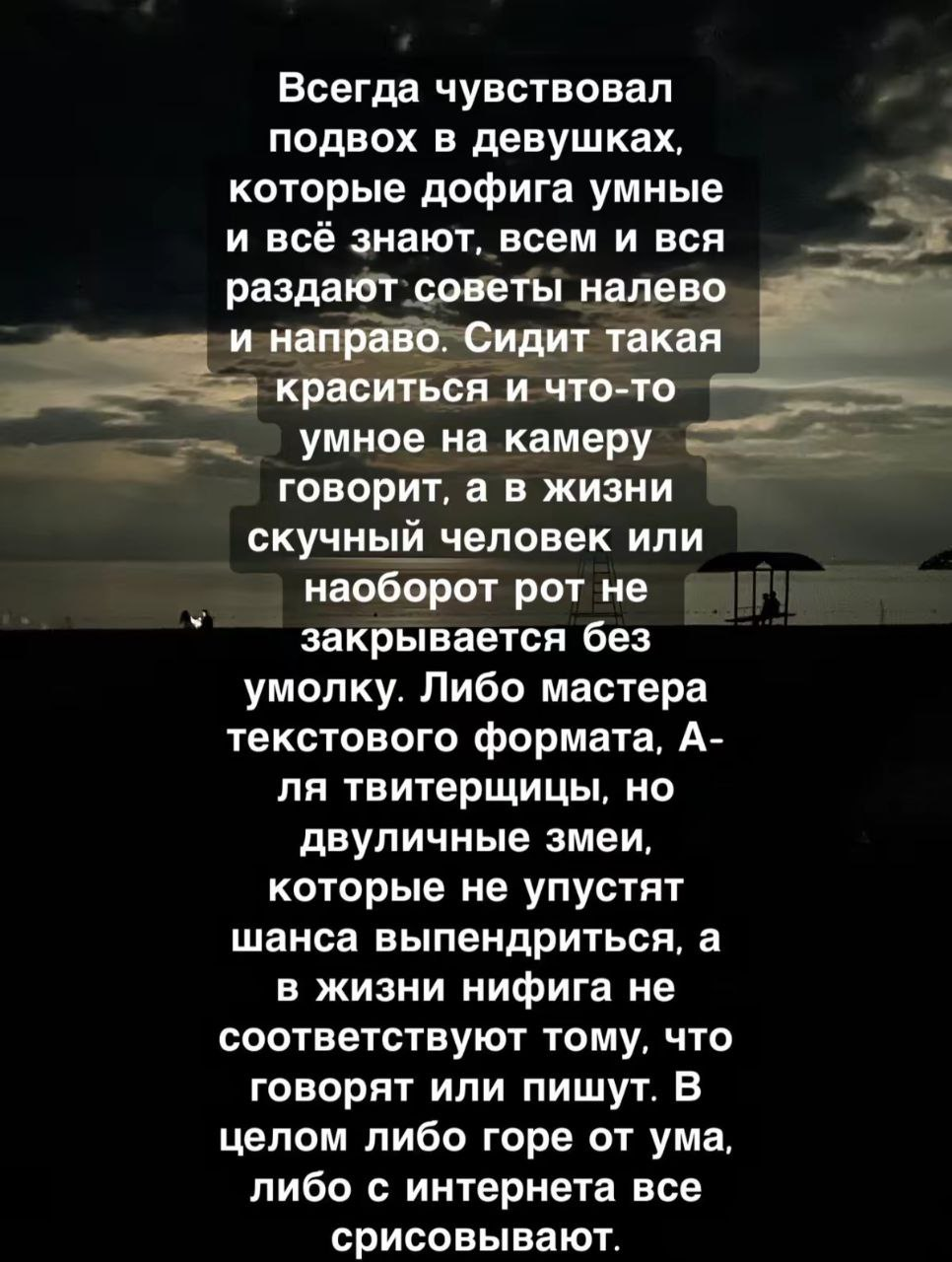 Самый частый типок со всеми меркантильными дамами. Вся Москва-сити наполнена этими безынициативными лицами в тонне макияжа, не понимаю тех, кто содержит чёрную дыру во плоти.