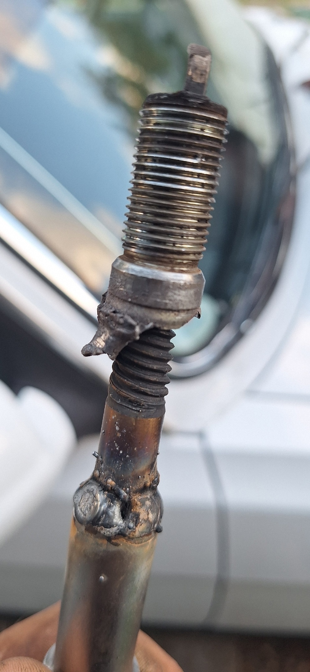 Три свечи я выкрутил. Четвертая (помним про двигатель крайслер?) была достойна медали «Непробиваемый». Она сломалась, но всё ещё оставалась сидеть в резьбе. Возможно, даже будучи сломленной, она сидела в глубине и мерзко ржала над нами.
