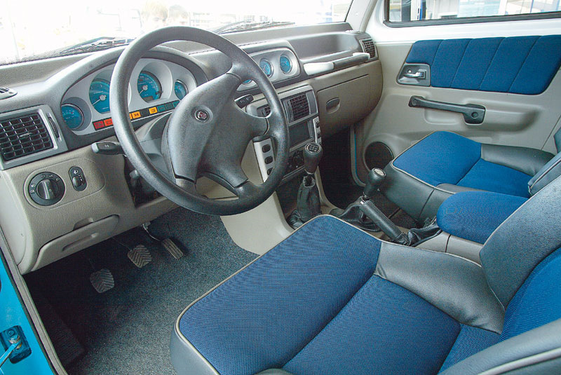 Салон «Комбата» получился довольно широким. Даже сзади, не говоря о передних креслах, были установлены полноценные сиденья, обеспечивающие комфортное пребывание на борту. Удивительно, но пространства для ног задних пассажиров у машины было с избытком. Впрочем, места для багажа из-за этого осталось совсем мало. Цена «Комбата» планировалась на уровне 12–15 тыс. долларов. Многие посетители выставок, где экспонировался перспективный внедорожник, реагировали на такую стоимость довольно спокойно. А некоторые даже считали, что для машины такого класса она низкая.