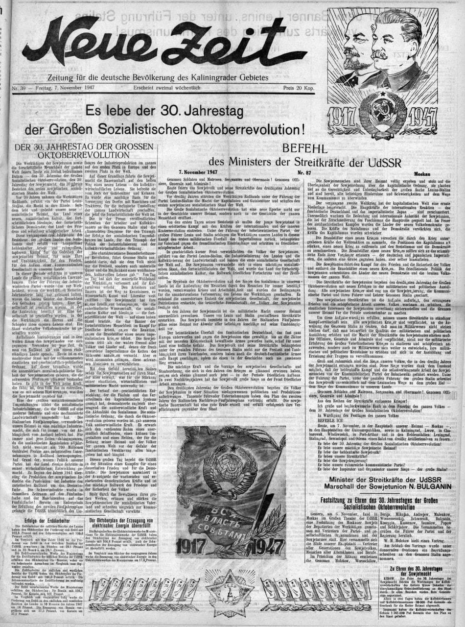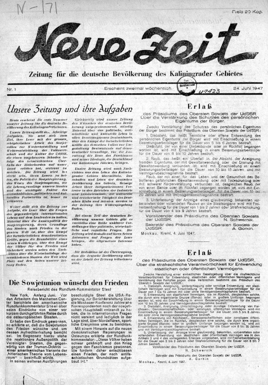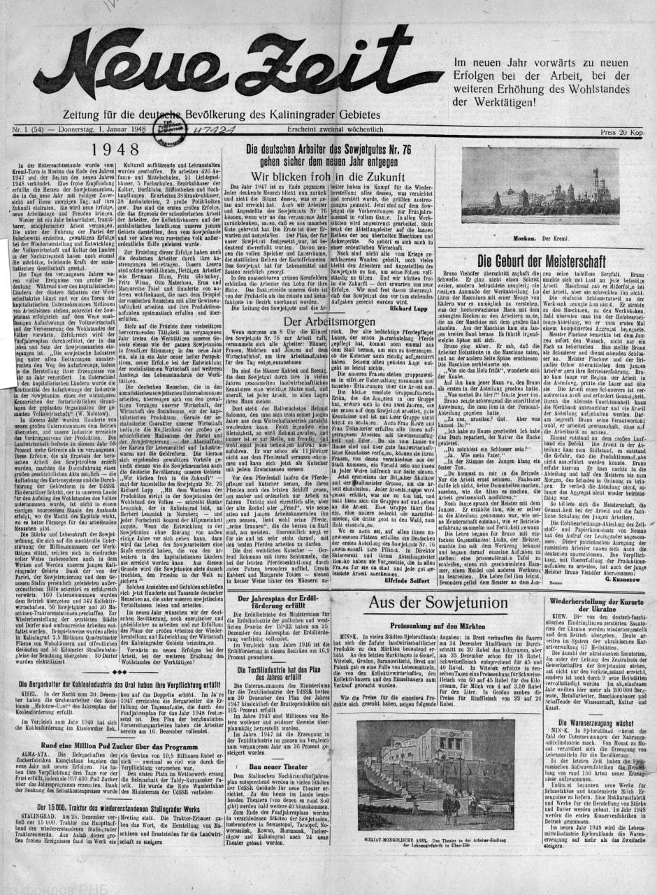 В Электронной библиотеке РНБ интересное пополнение - газета "Neue Zeit", которая издавалась для немецкого населения в Калининграде в 1947-1948 гг.