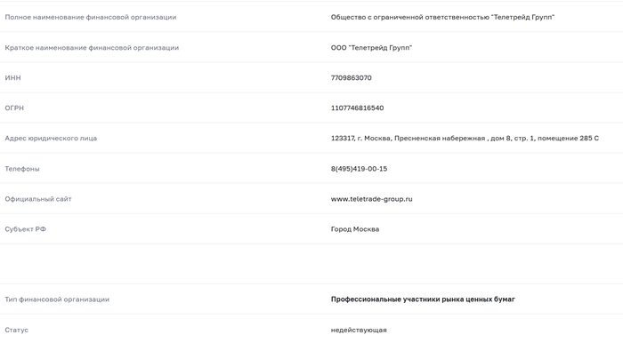 Тут видно две ликвидированные ООО ТелеТрейд.