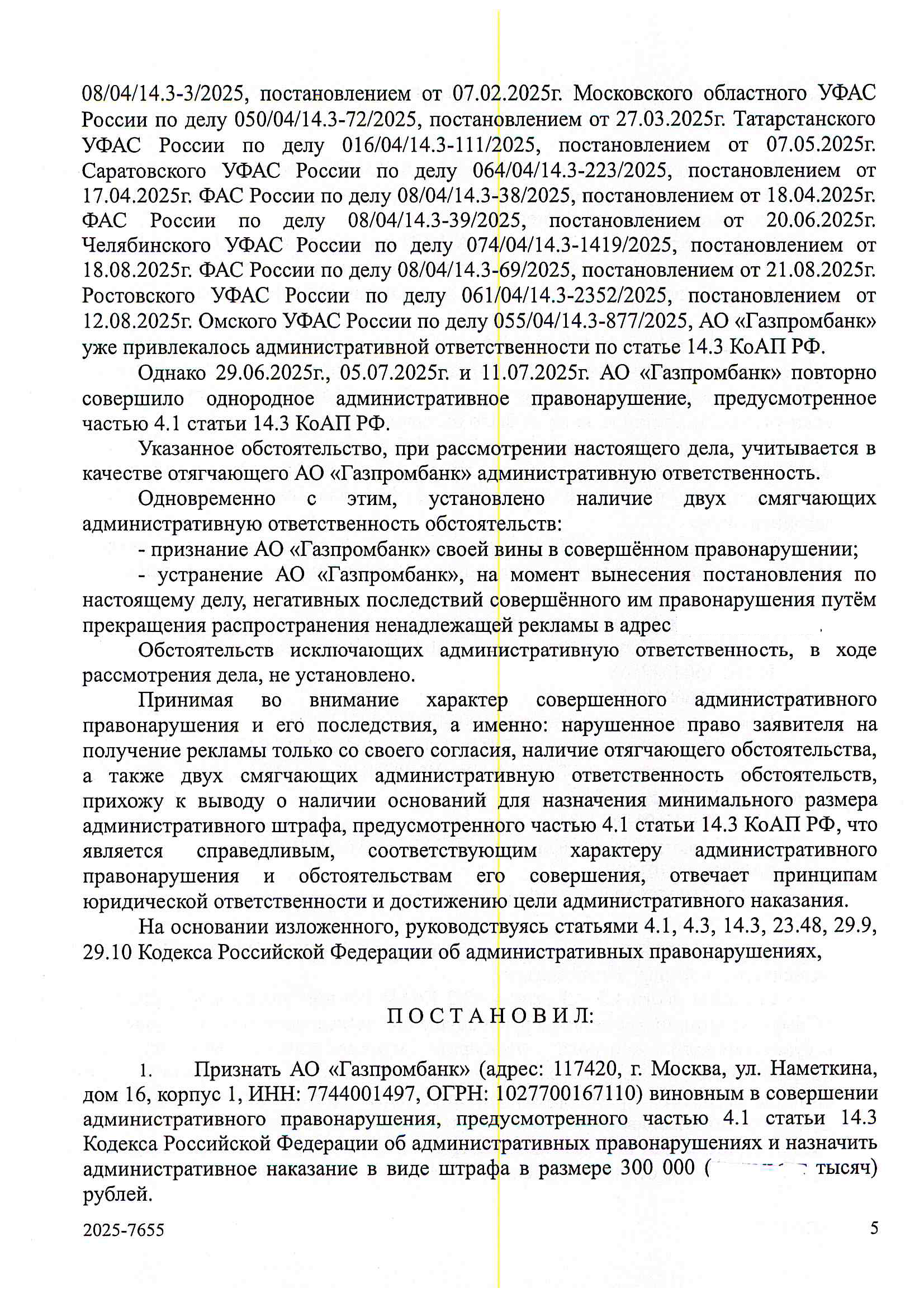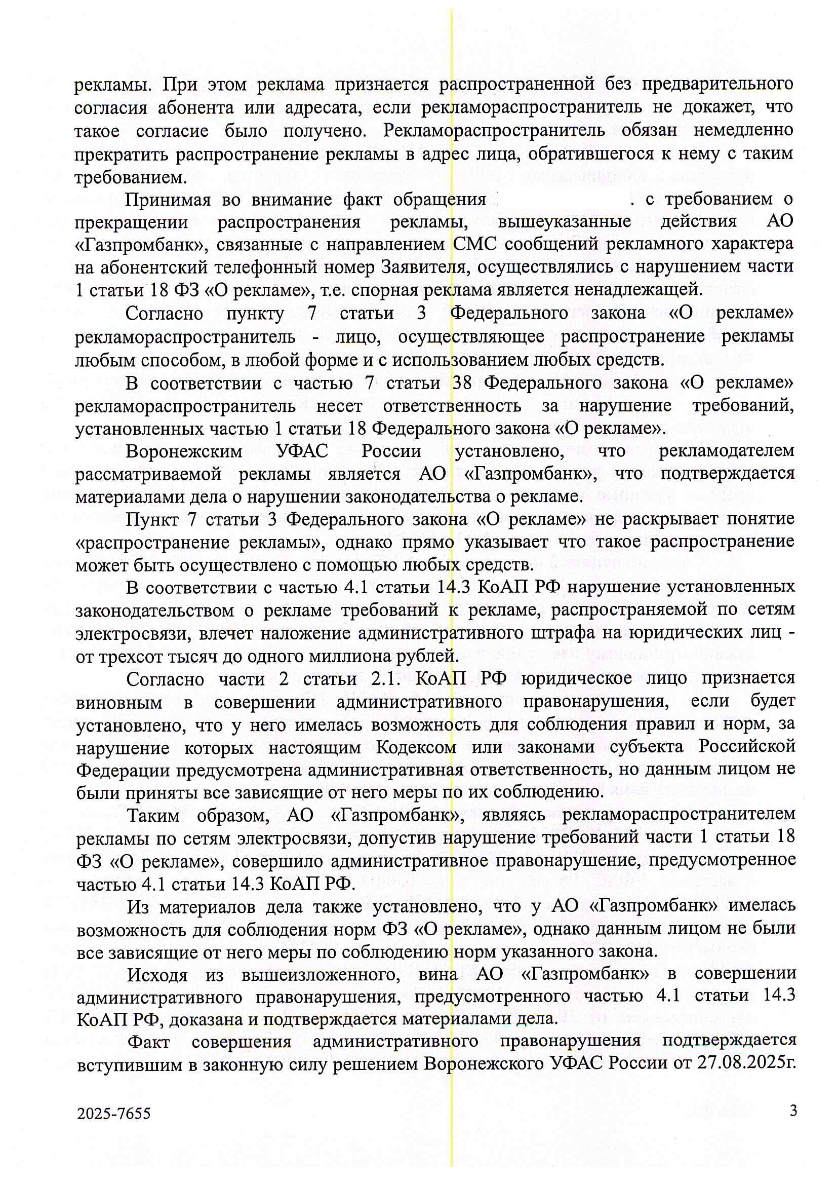 Чуть длиннее - Газпромбанк отпрапвлял СМС с рекламой, попросили перестать - не перестал, ФАС его оштрафовала