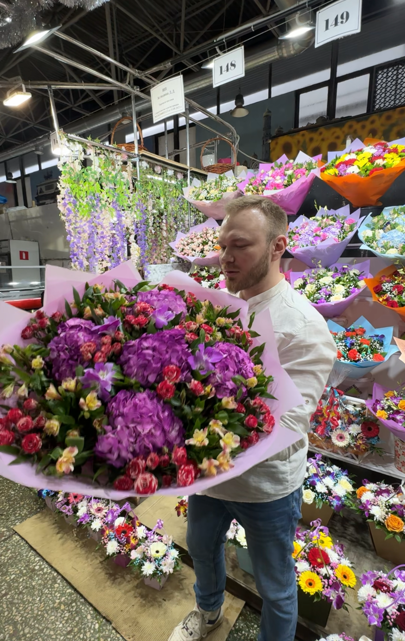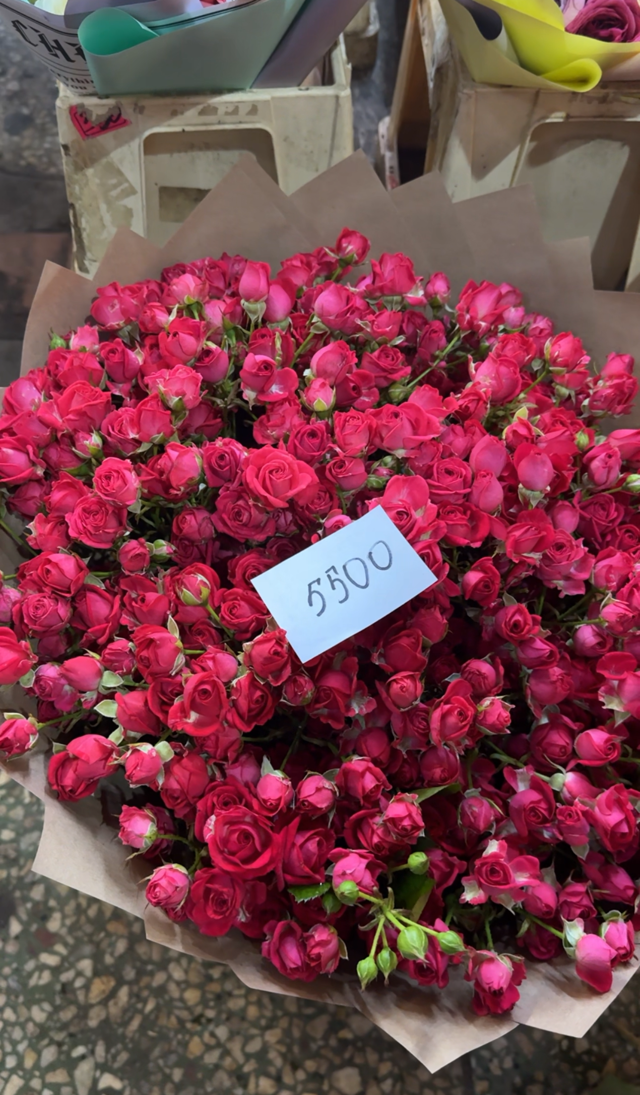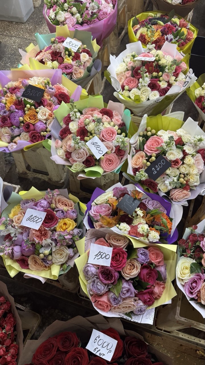Выбор огромный, но будьте осторожны. Ни все цветы свежие. Рынок состоит из 3 павильонов. В первом самые дорогие, во втором цены средние, но много магазинов, где продаются цветы по отдельности. А в третьем самый большой выбор букетов и самые низкие цены.