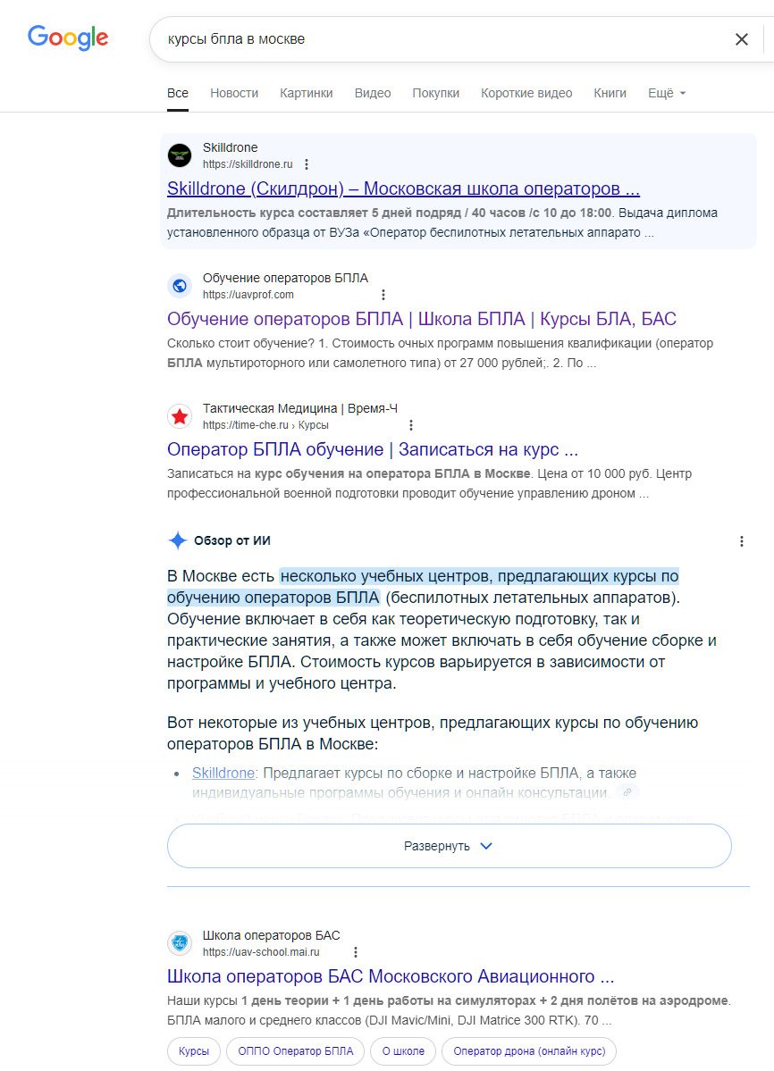 Второе. Энтузиаст отправляется сам по себе на какие-нибудь коммерческие курсы, где учат на "БПЛА вообще", без привязки к конкретным типам беспилотников.