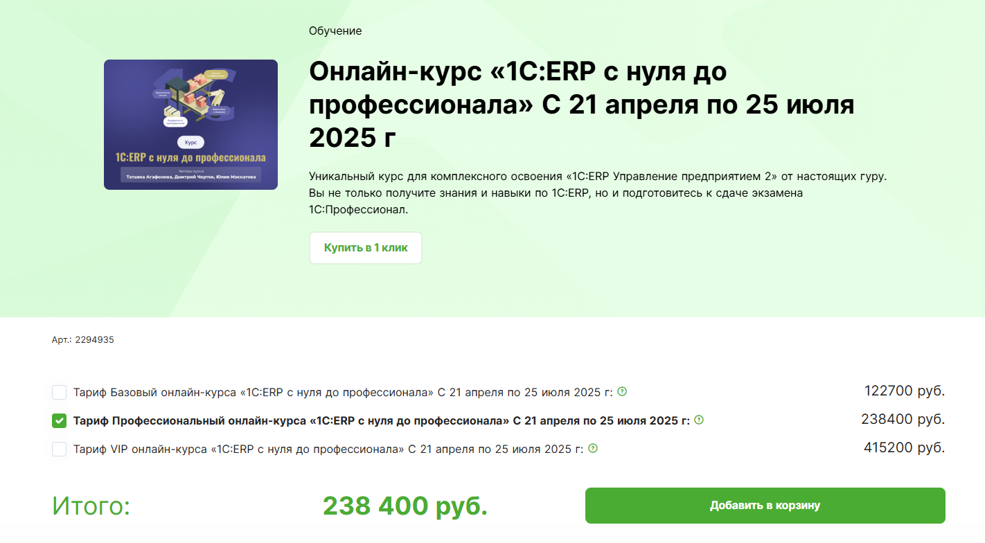 Решил поискать курсы по конфигурированию ERP. Какие-то курсы в интернете есть, но, в основном не по конфигурированию и, в некоготых случаях, ценник такой, что непонятно, зачем учить ERP тем, кто способен платить за такие курсы: