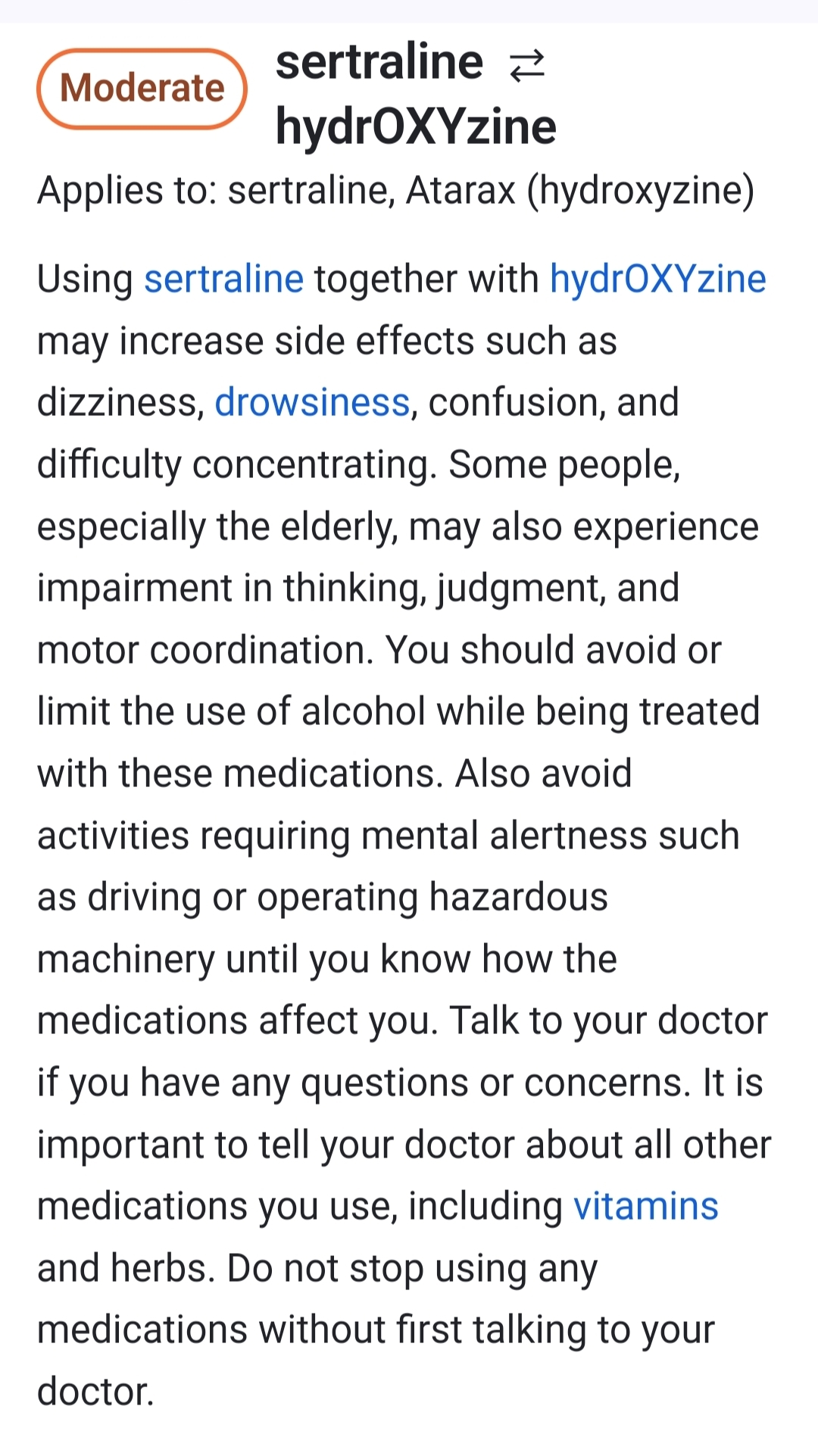 Посмотрим например сертралин и его взаимодействие с Атараксом.