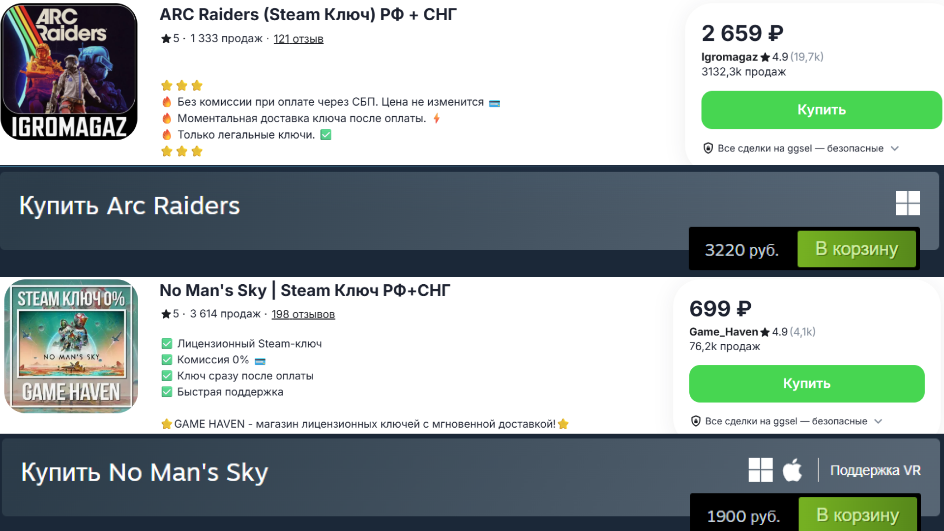 Например сейчас, во время распродажи, можно взять ARC Raiders за 2659 ₽, тогда как в Steam шутер стоит 3220 ₽. No Man’s Sky за 699 ₽ вместо 1900 ₽, REMATCH стоит 925 ₽, а не 1399 ₽. И это далеко не все.