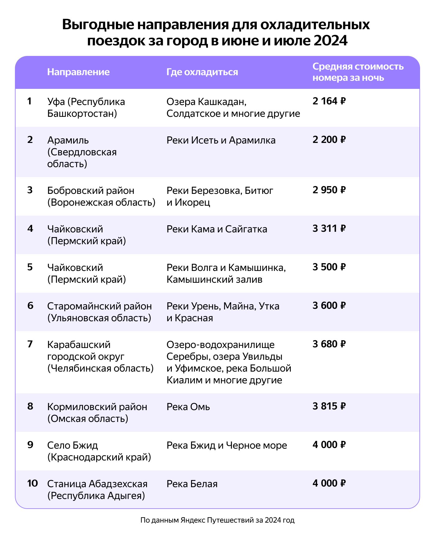 К примеру, жители Москвы, Петербурга, Татарстана и Челябинска выбирают отели и дома отдыха рядом с городом. А вот новосибирцы едут на Алтай. Жители Нижнего Новгорода и Республики Башкортостан тоже готовы выбраться в другие области, лишь бы спастись от жары.