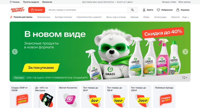 В 2023 году Магнит купил KazanExpress и стал называться Магнит Маркет. Новый игрок набирает популярность на рынке и обладает уникальными достоинствами в сравнении с другими маркетами России.
