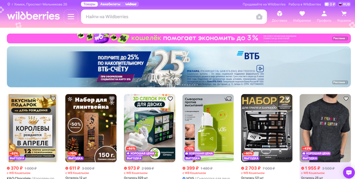 Один из самых крупных маркетплейсов с большим ассортиментом товаров. С каждым годом компания расширяет свои позиции, к 2025 году открыто около 30 тысяч пунктов выдачи не только в России, но и в странах СНГ. Wildberries возглавляет рейтинг маркетплейсов по версии Data Insight.
