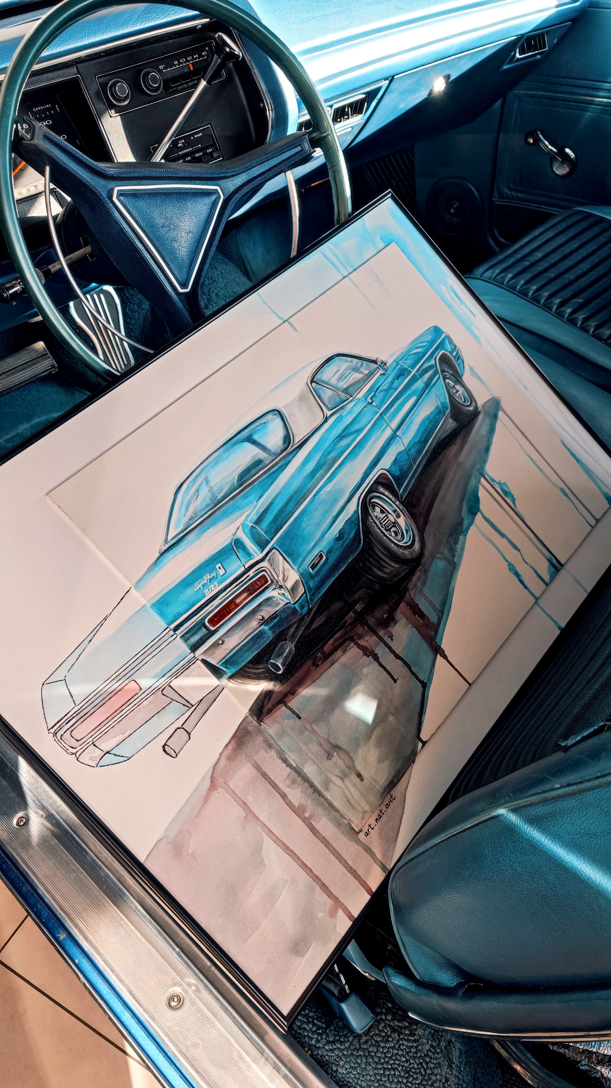 Двойной Холст 70см-50см, жидкий акрил, защитный лак, чёрная алюминиевая рама.