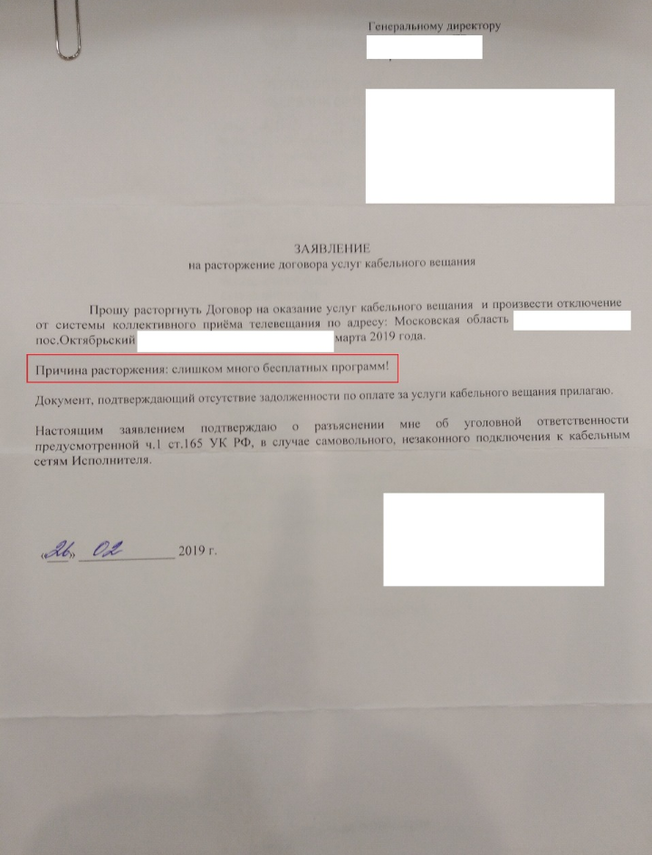 indeetz409 Где-то в параллельной вселенной... 6 лет назад Сегодня пришло заявление на отключение антенны... Первый раз в моей практике такое [моё] Антенна Работа