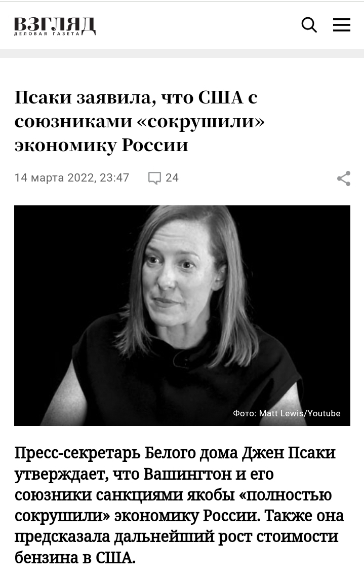 lonzk 3 года назад Где-то я уже это слышал Вроде что-то про в клочья порванную экономику было.... Санкции США Джен Псаки Ещё 0