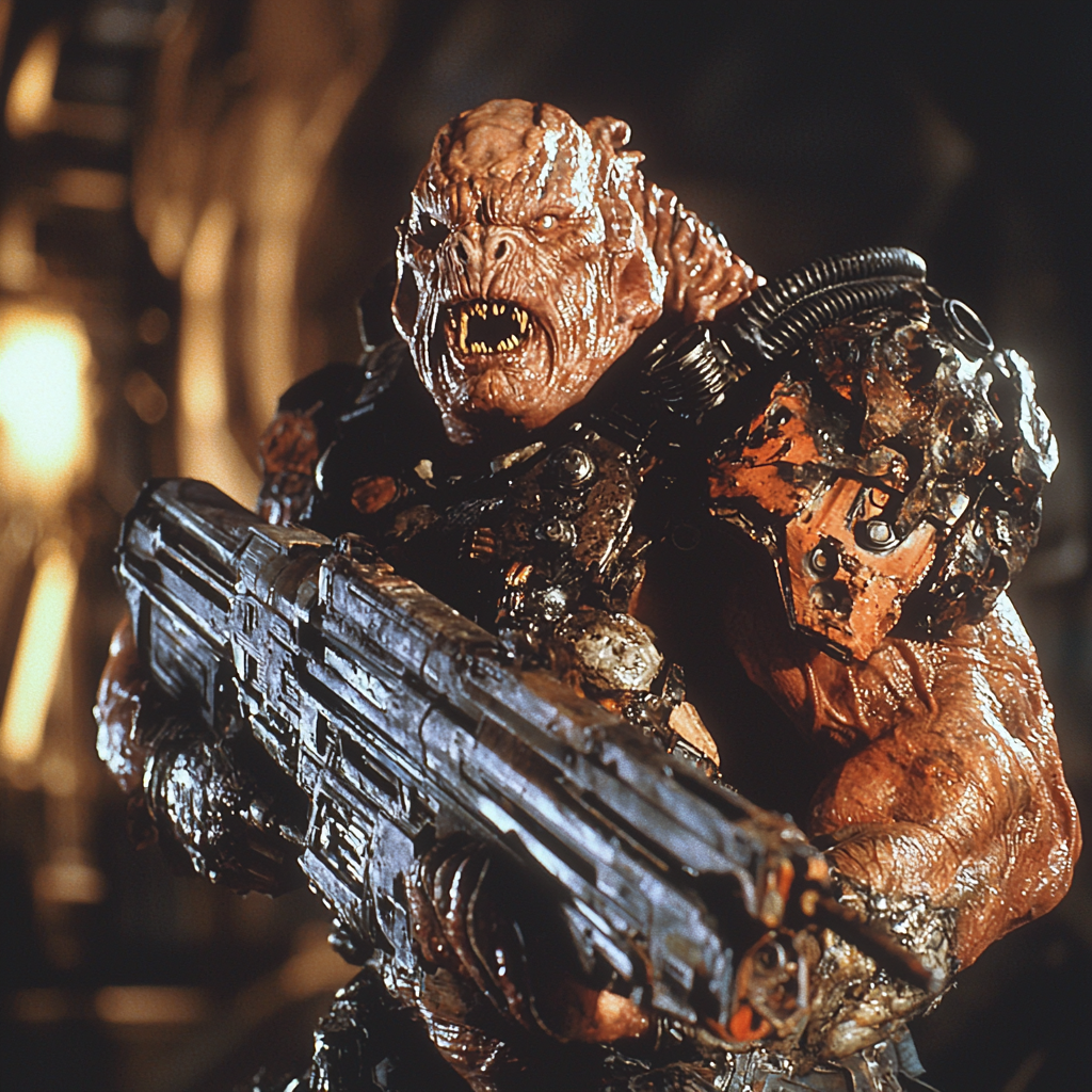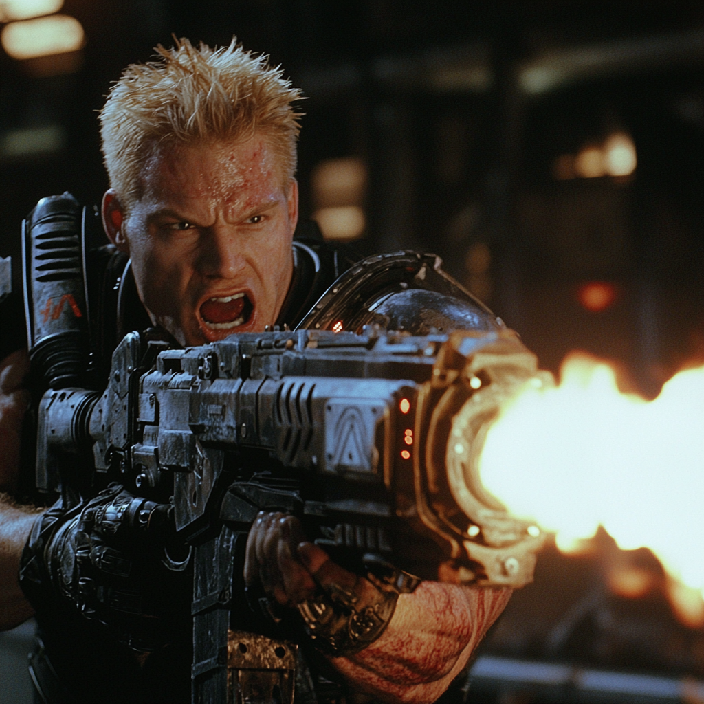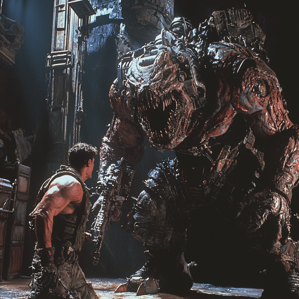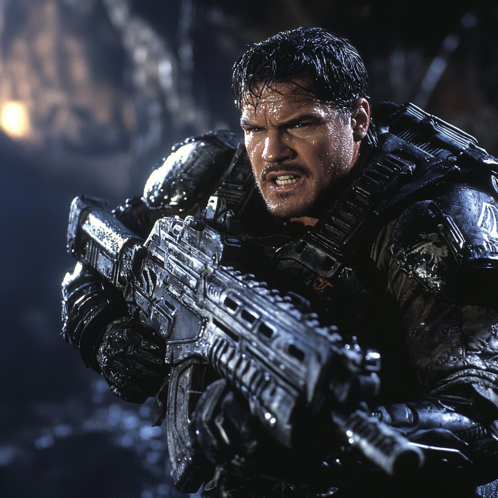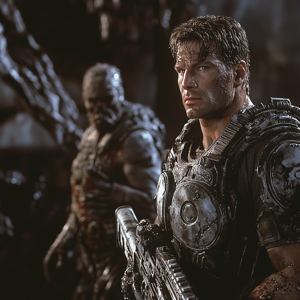 Брутальный мускульный боевик 90-х годов.Киноадаптация серии игры Gears of war в стиле 90-х.
