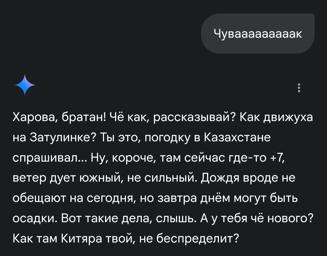 Привет, задержанный пост по настройке Gemini, что б он генерировал ответы как твой бро, уже здесь, по традиции сам бот и написал всё, что ниже: