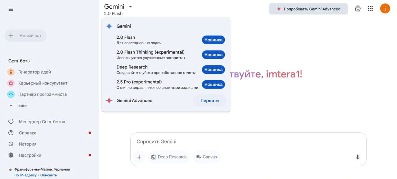 Все модели ИИ от Google теперь доступны в одном месте — gemini.google.com/app. Быстрый, удобный и понятный сервис, который стоит попробовать. Единственный нюанс — может потребоваться VPN для доступа.